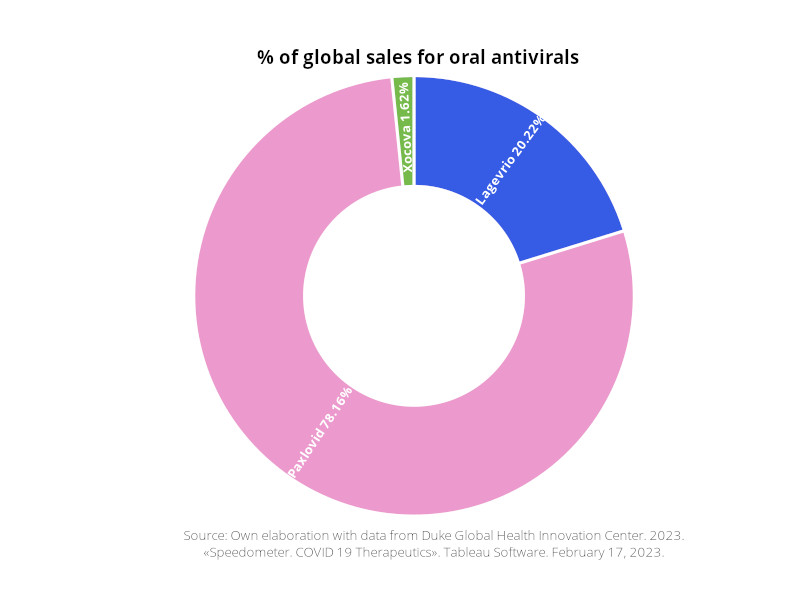 Due to the greater effectiveness of Pfizer’s Paxlovid over other developments, it dominates the antiviral market, controlling 78% of sales. In 2022, Pfizer received revenues of $18.933 billion from the sales of Paxlovid, which corresponds to 18.87% of its total revenue.This amount is comparable to the total economic support provided by the IMF in 2020 to 50 countries to address the ravages of the pandemic. It is slightly higher than the GDP of Albania or Georgia. Pfizer expects sales of Paxlovid to reach $8 billion by the end of 2023.