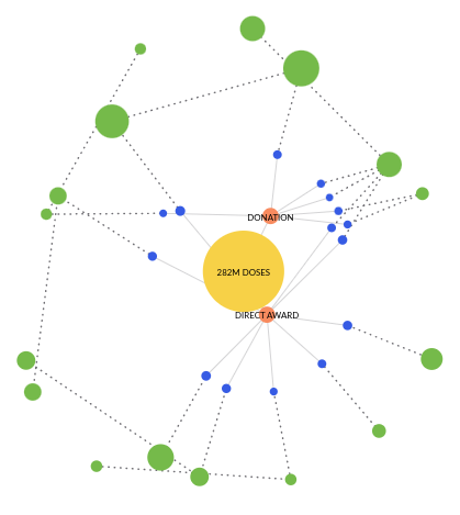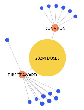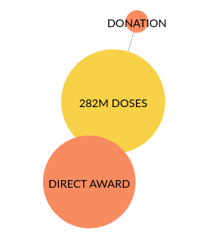 All vaccine procurement contracts were directly awarded. Mexico secured 260,930,000 doses via COVAX and pharmaceutical company contracts. In addition, Mexico received 20,812,800 doses via vaccine donations from the company Moderna, the US government, the Canadian government, the South Korean government, and the governments of Austria, Belgium, Croatia, France, Ireland, Italy, the Netherlands, Portugal, Slovenia, Spain and Sweden via COVAX.