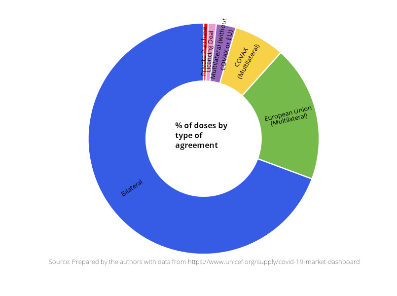 Both health emergency and geopolitical criteria drove the accelerated approval process. The FDA has only approved vaccines for emergency use from four of the largest US pharmaceutical companies: Pfizer-BioNTech, Moderna, Janssen, and Novavax. Vaccines from Russia, China, India, and the United Kingdom were not approved by the FDA, even though all except for Russia’s vaccine were approved by the WHO. Although various international cooperation mechanisms were established to facilitate global access to vaccines, they proved insufficient in mitigating inequalities and limiting vaccine hoarding. UNICEF reported that 69% of vaccine doses were obtained through bilateral agreements, the European Union procured 19%, and only 7% were obtained through the COVAX mechanism.