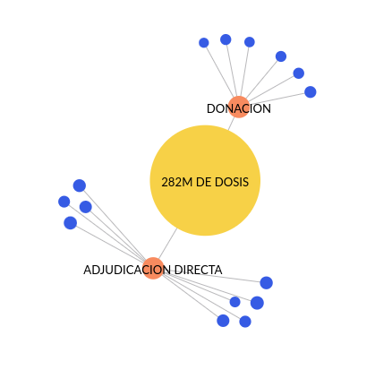 Todos los contratos de adquisición de vacunas fueron adjudicados directamente. México se aseguró 260,930,000 dosis en contratos con empresas y con Gavi Alliance vía el mecanismo COVAX. Además, México recibió 20,812,800 dosis vía donaciones de vacunas del gobierno de Estados Unidos, del gobierno de Canadá, del gobierno de Corea del Sur y de los gobiernos de Austria, Bélgica, Croacia, Francia, Irlanda, Italia, Países Bajos, Portugal, Eslovenia, España y Suecia vía COVAX y de la empresa Moderna.